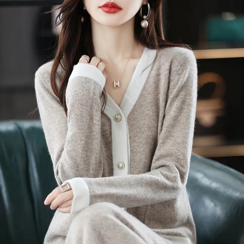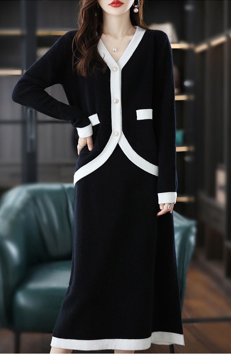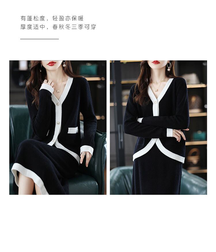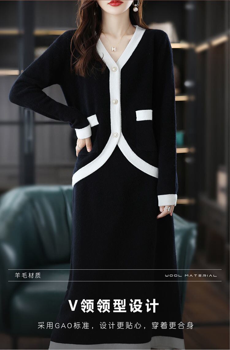 初秋の通勤スーツの女性のニット V ネックピュアウールカーディガンロングスカート 2 点セット服 オータム 秋物 Vネック got59410434389