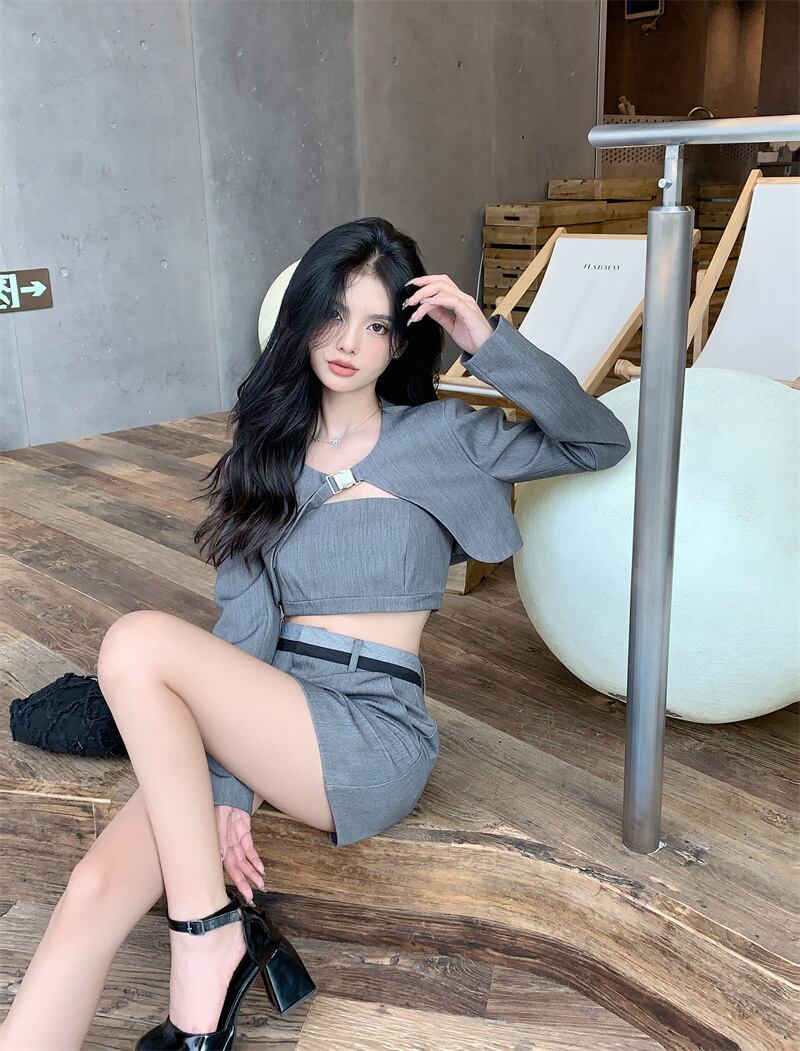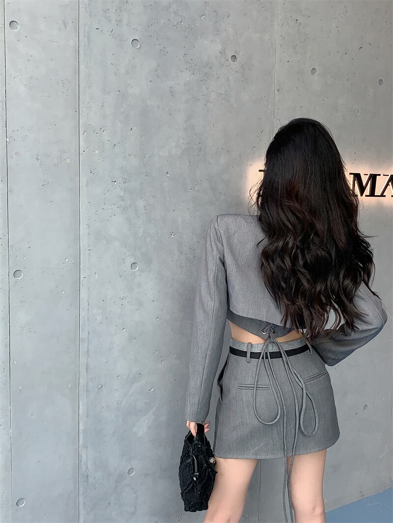 スウィート クール レトロ スモーキー グレー 気質 スーツ コート チューブ スカート 3点セット Y2K服 大人ガーリー キュート カジュアル got14818818718