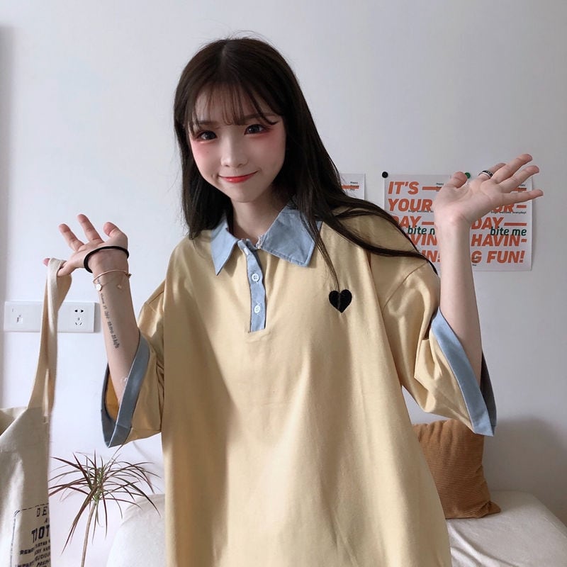 シャツ原宿ラビングハート刺繍 Tシャツ Tシャツトップスキャラクターかわいい Tシャツ 大人ガーリー スウィート キュート カジュアル