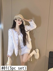 千鳥格子スーツ レディース 秋 長袖 ラウンドネック ニットコート ハーフ丈 ショートスカート キャミソール 3点セット ロング オータム 秋物 Oネック