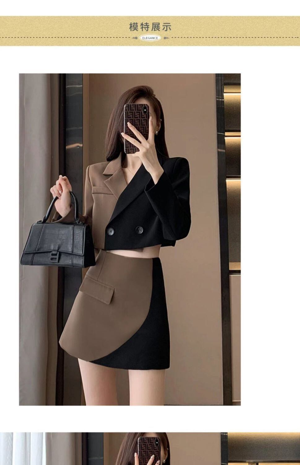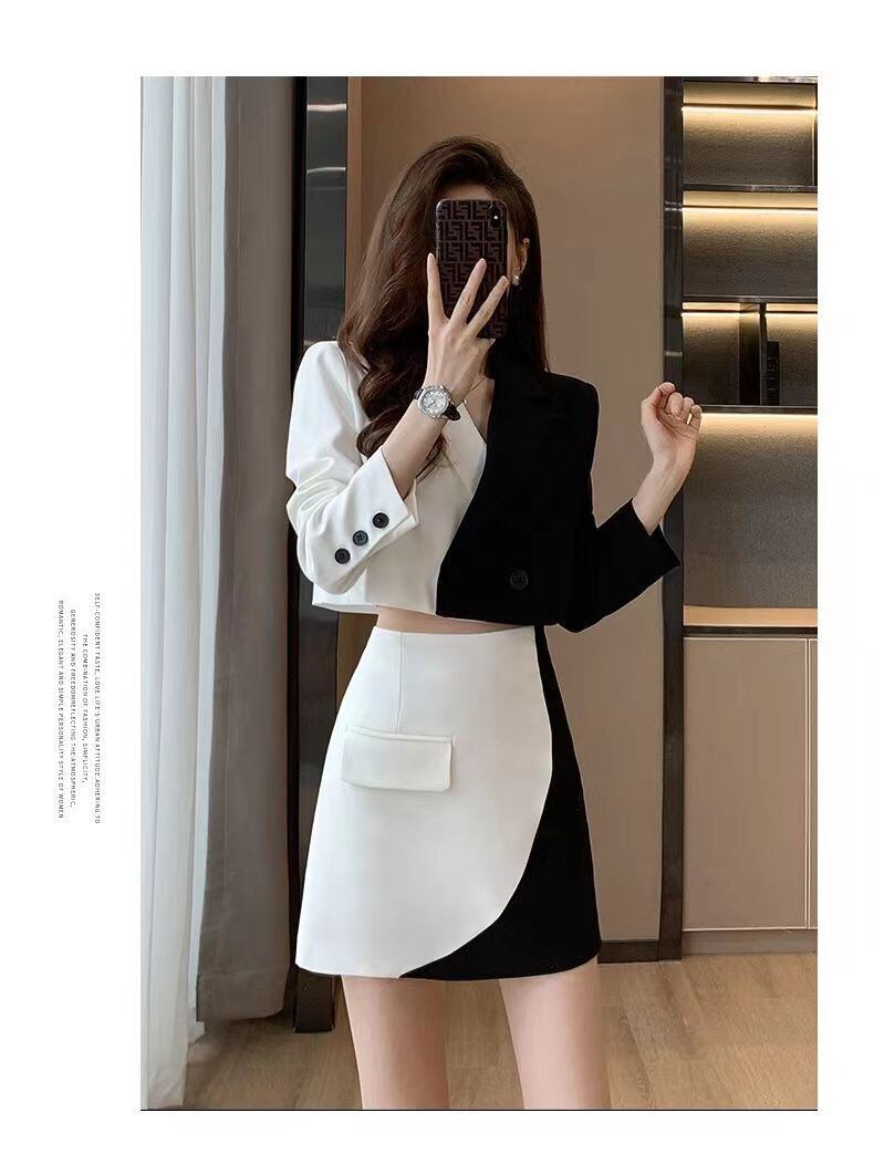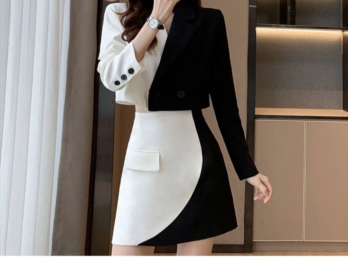 春 OL通勤 スーツ レディース 長袖 カラーブロック 長袖 コート ウエストスカート 2点セット ロング スプリング 春物 会社 学校 通勤や通学にも