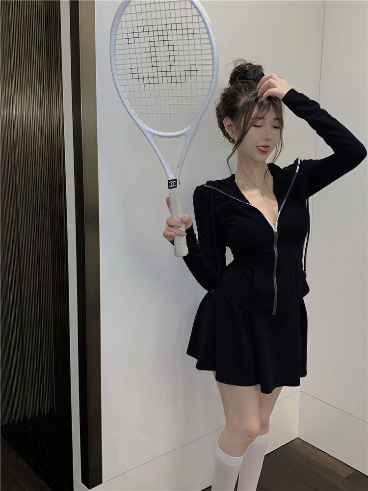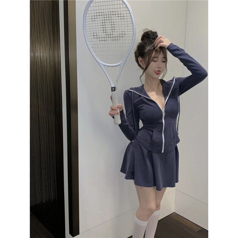 スポーツスウィートホットガールスーツの夏ブルースリムスウェットシャツコートウエストスカートツーピースセット服 大人ガーリー キュート カジュアル サマー 夏物