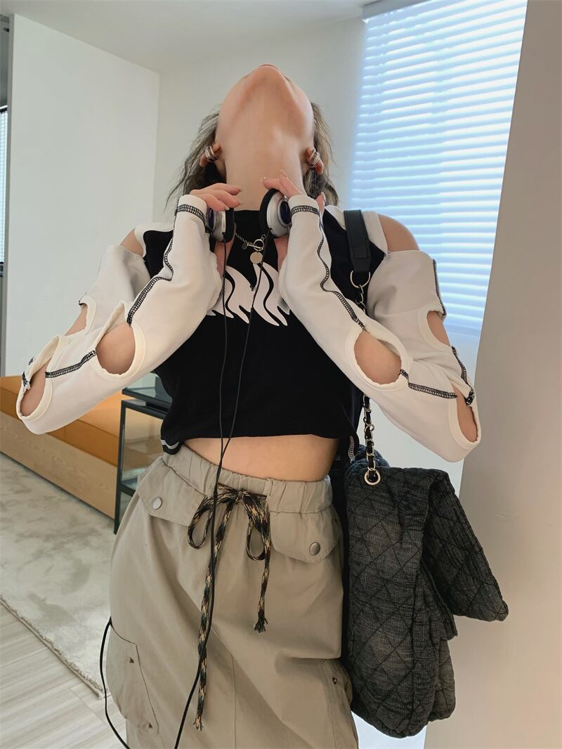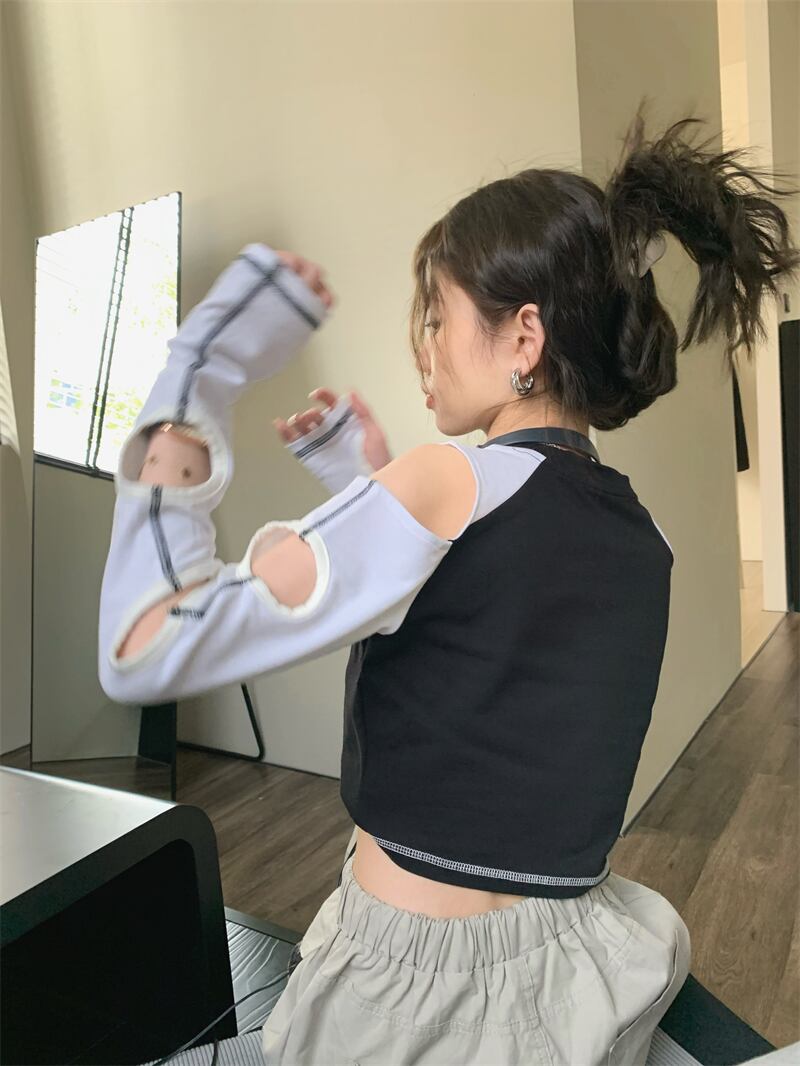 Tシャツ中空アウトオフショルダー長袖 Tシャツトップスレディースホットガールズディスコダンスジャズ Tシャツ ロング