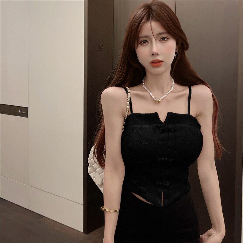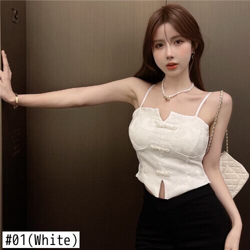 ソリッドキャミソールレトロシックな見事なキャミソールの夏の外着ホットガール純粋な欲望セクシーなショートホワイトトップ サマー 夏物 ピュア ソリッドカラー