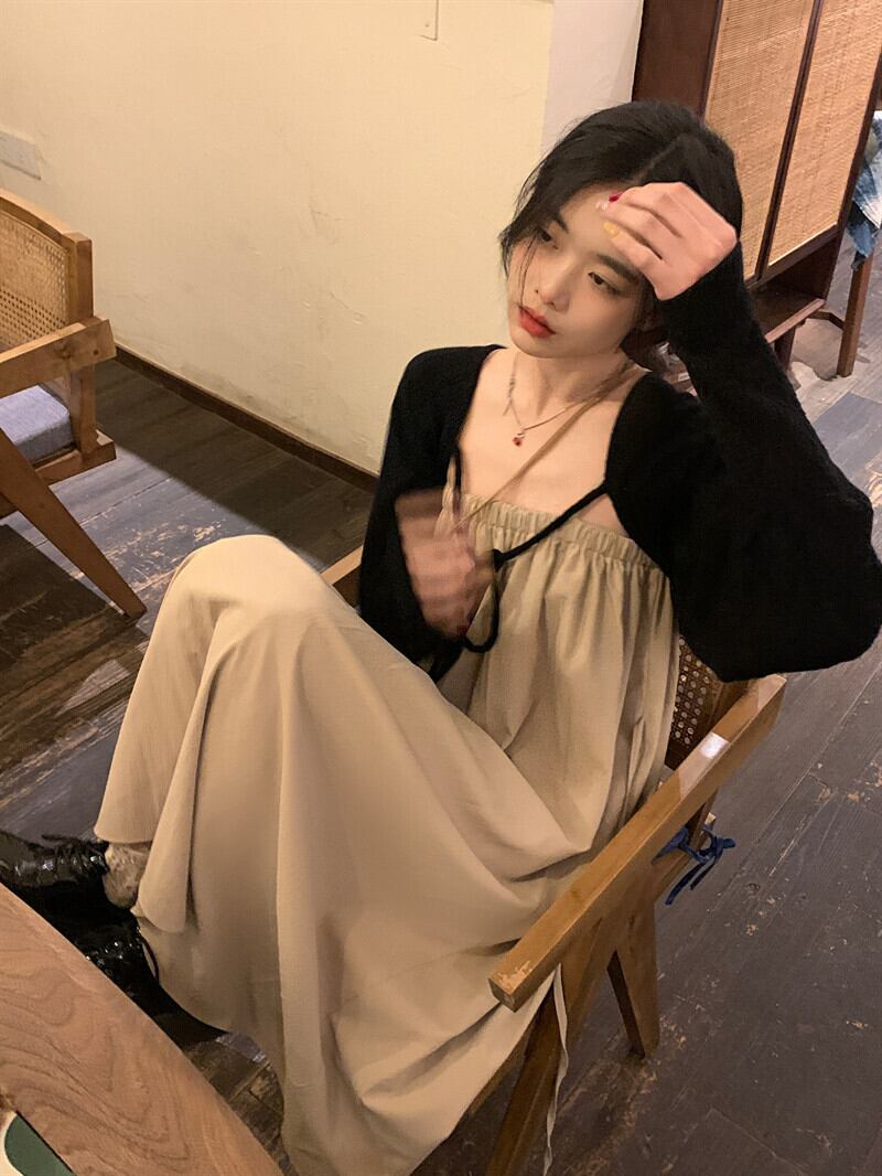Gothiscyn ジェントルチョッキツーピーススーツドレス夏甘いホットガールチューブトップサスペンダースラッシュネックロングドレス 大人ガーリー スウィート キュート カジュアル サマー 夏物