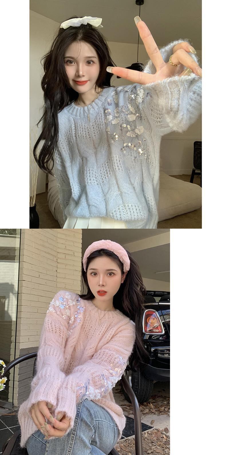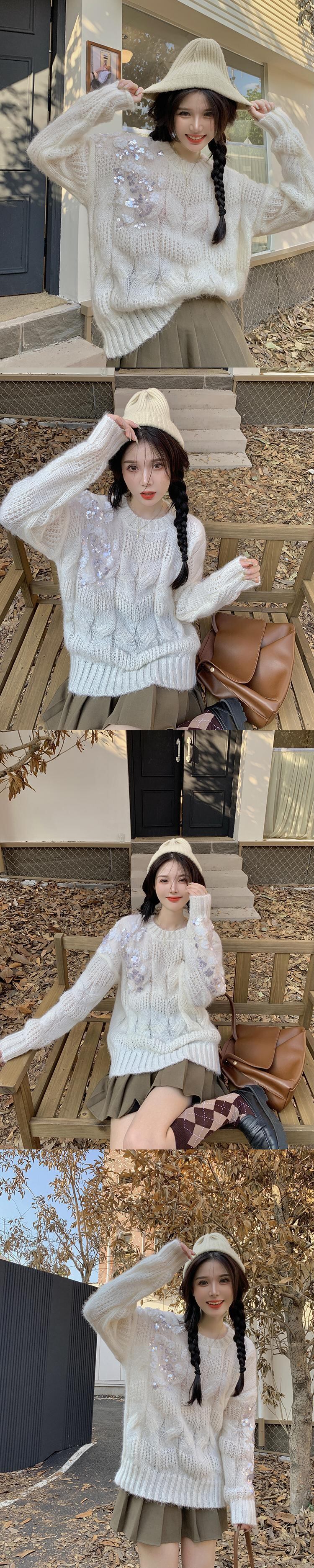 原宿ニットセータープルオーバーツイストセーター秋甘い洋風怠惰なルーズ長袖ニットトップ ロング 大人ガーリー スウィート キュート カジュアル かわいい オータム 秋物