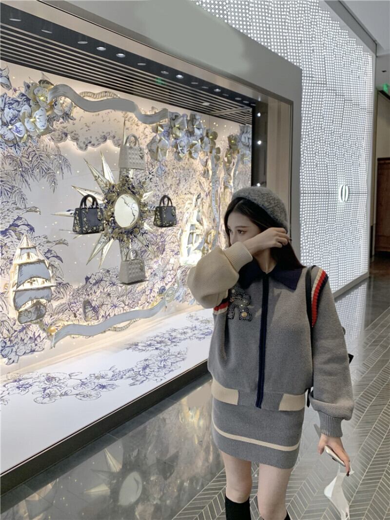 スウィートガールスーツの長袖ターンダウン襟ジッパーコートウエストヒップラップスカート 2 点セット服 ロング 大人ガーリー キュート カジュアル