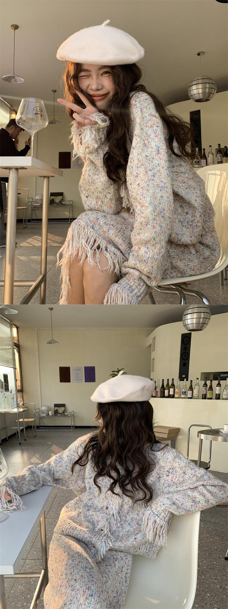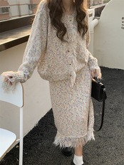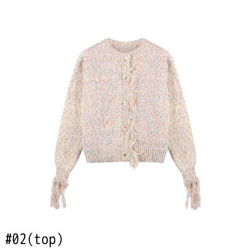 スウィート ガール スーツの秋の電話カーディガン セーター コート弾性ウエスト ニット スカート 2 点セット服 エラスティック 伸縮 大人ガーリー キュート カジュアル オータム 秋物