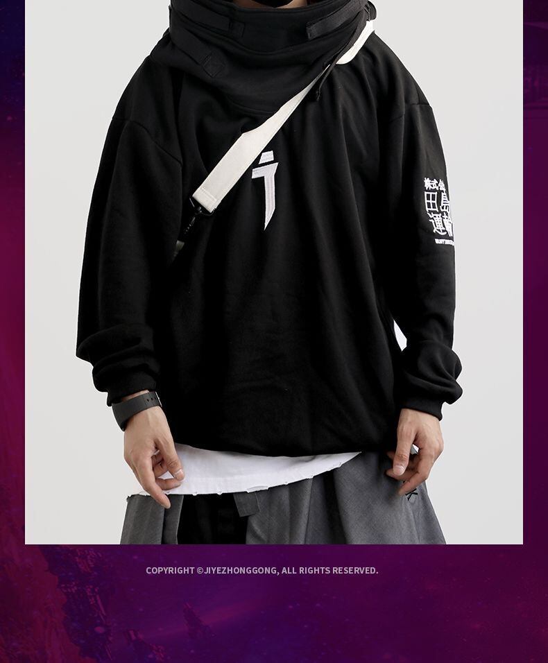 ゴスパンクスウェットパーカー男性特大黒のフード付き服プルオーバータートルネック美的パーカー春秋のトレーナー ブラック シャツ スプリング 春物 オータム 秋物