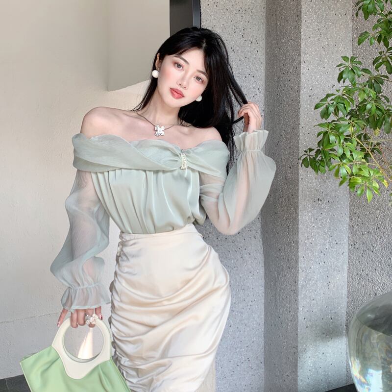Gothiscyn ワンショルダーシフォンシャツブラウス夏の純粋な欲望ホットガールセクシーなパフスリーブシャツトップ サマー 夏物 ピュア