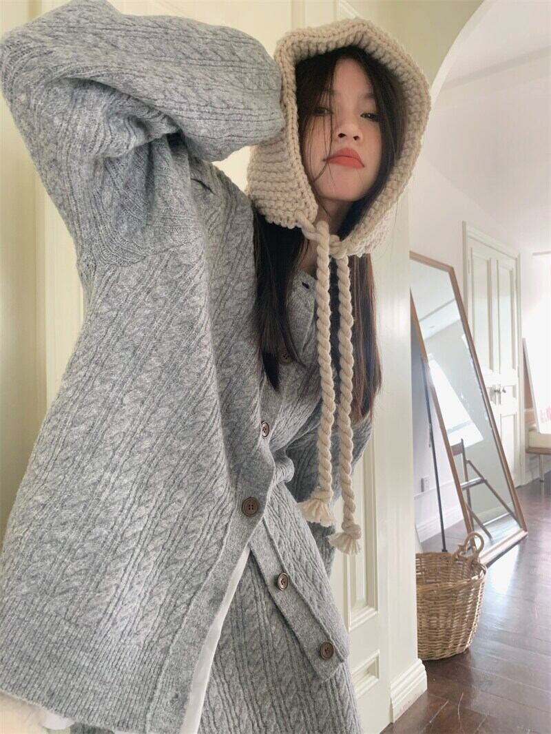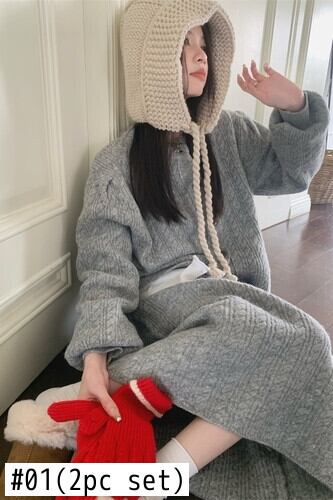 Sweet Girl スーツ レディース Oネック ツイスト 万能 カーディガン セーター ミディアム丈 スカート 2点セット 洋服 大人ガーリー スウィート キュート カジュアル