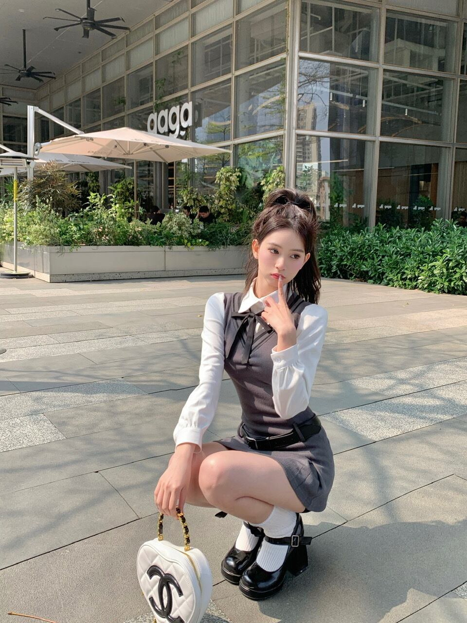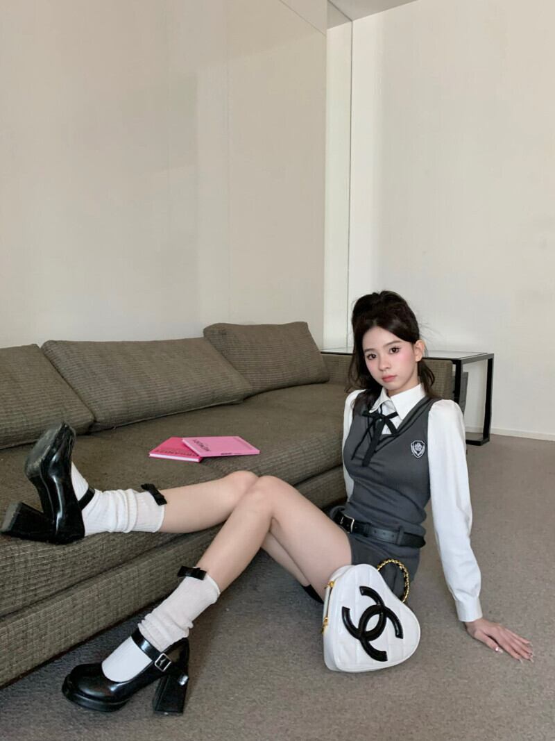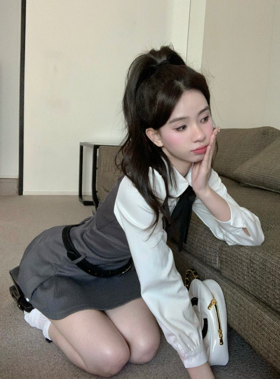ホットガールスタイルスーツの長袖シャツベスト V ネックスリム甘いドレス 2 点セット服 ロング 大人ガーリー スウィート キュート カジュアル Vネック