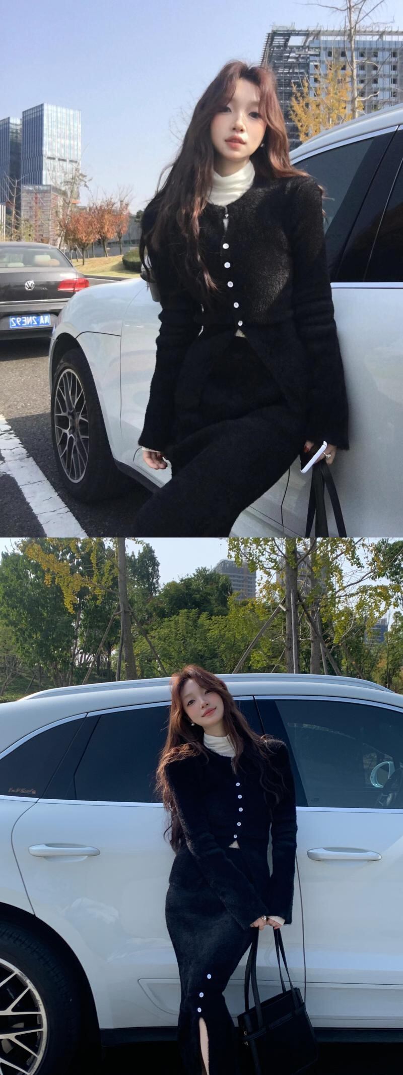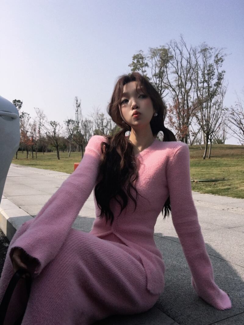 レディスタイルスーツイミテーションミンクセーターの秋と冬スリムトップウエストスカートツーピースセット服 オータム 秋物 ウィンター 冬物