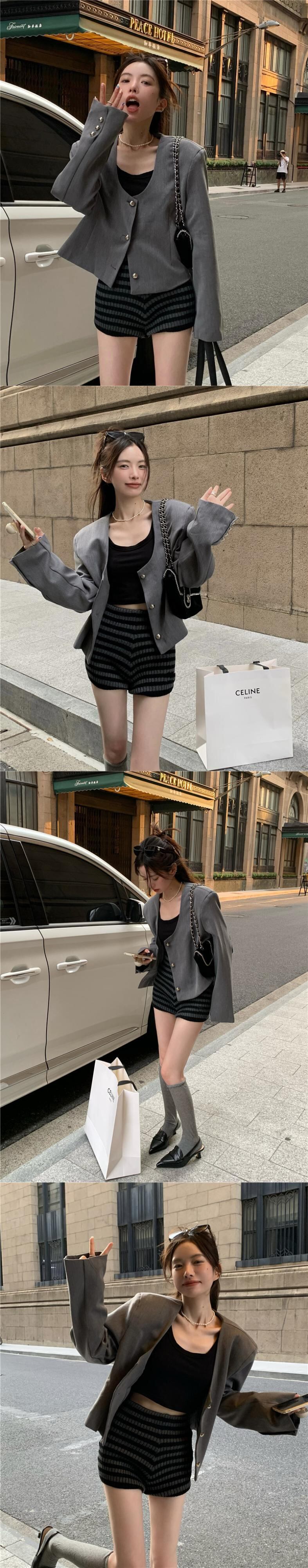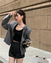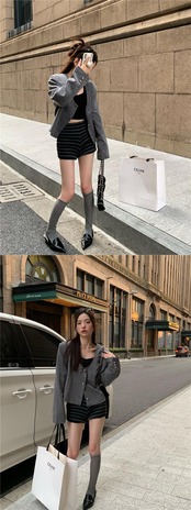 2 点セット レディース衣装スーツ U ネック長袖ジャケット ストライプ ショート梨花服秋/冬セット ロング オータム 秋物 ウィンター 冬物