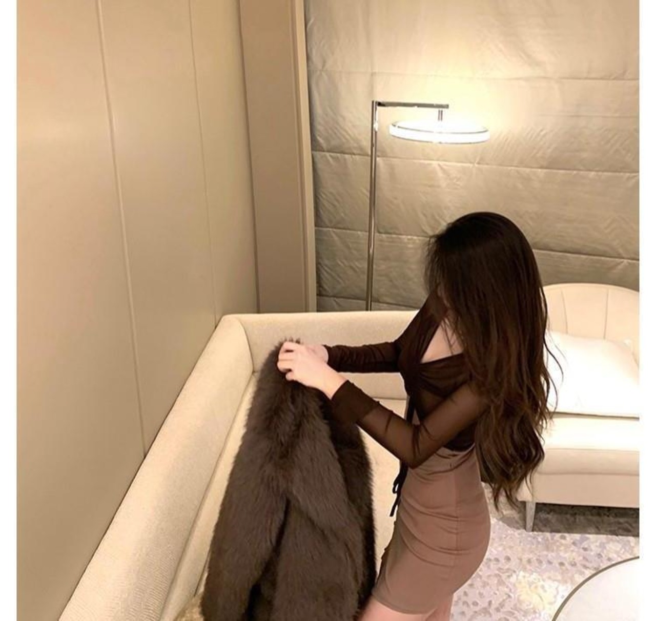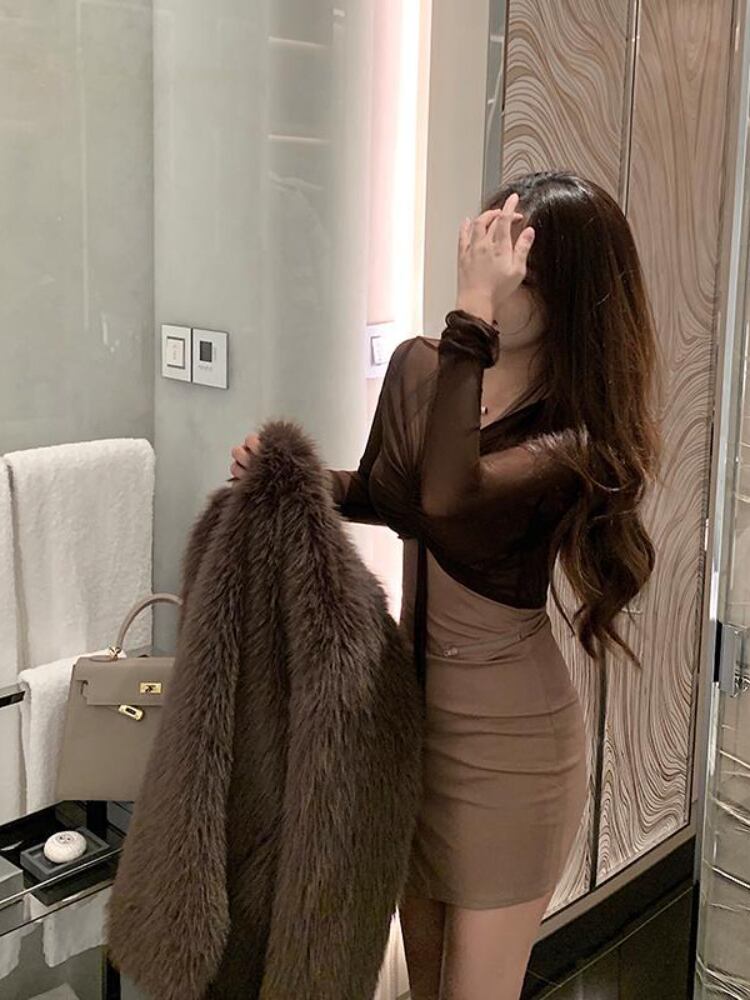 Gothiscyn スーツ ホルター ドレス メッシュ長袖トップ コーヒー スキニー セクシー クラブツーピース スーツ ガーゼ プルオーバー衣装 ロング
