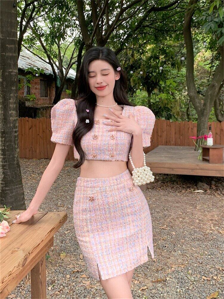 Gothiscyn 春夏ミニスカートクロップドジャケットスーツスウィートホットトップススカート 2 個セットスーツ服 大人ガーリー キュート カジュアル スプリング 春物 サマー 夏物