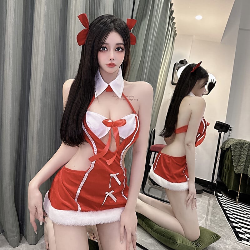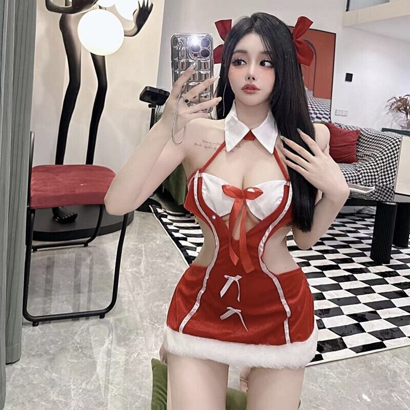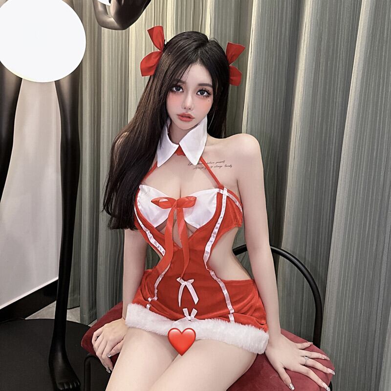 人気のスウィートガールピュアホットかわいいクリスマスターンダウンカラーロールプレイセクシーな中空ハートラップヒップドレスガール服 大人ガーリー キュート カジュアル