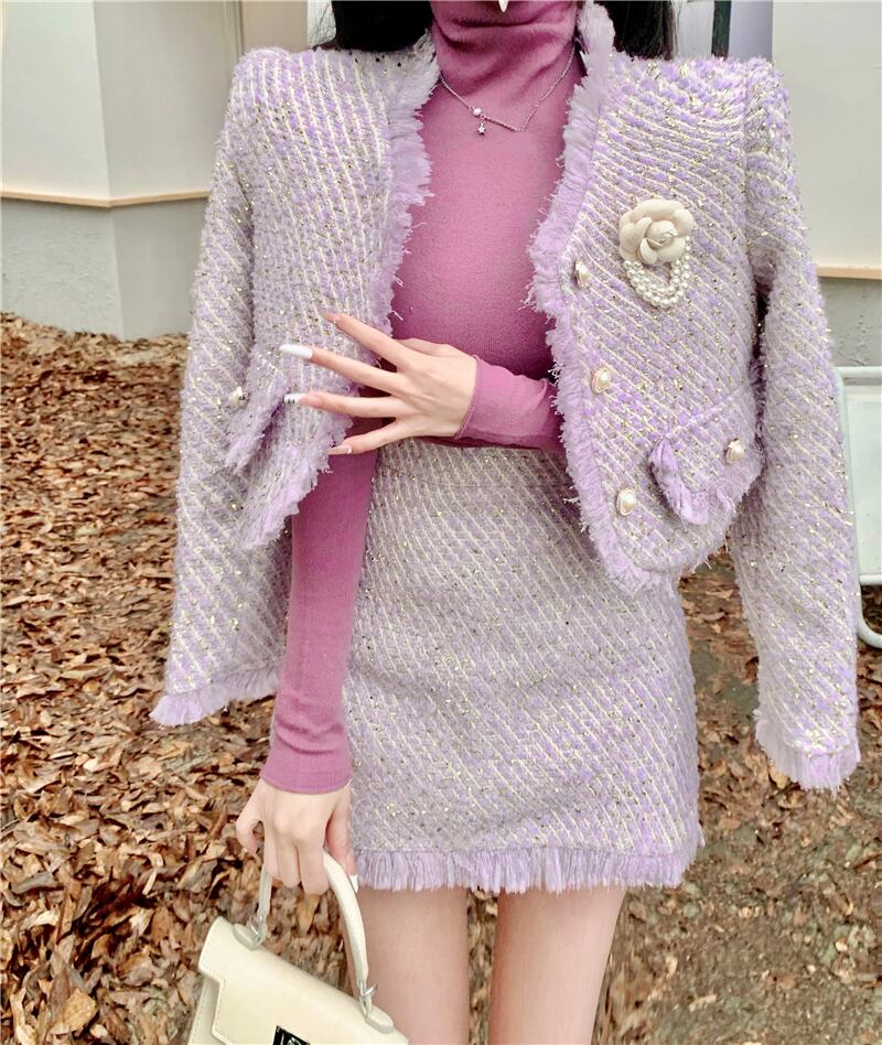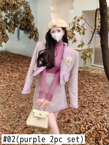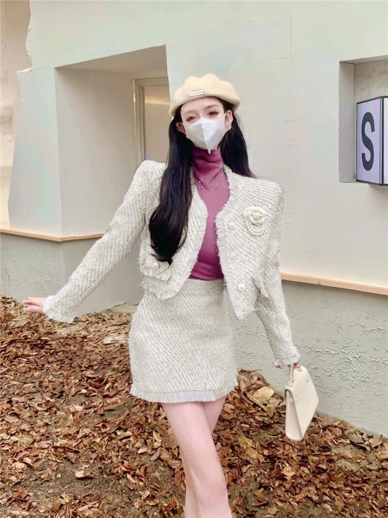 秋と冬のスーツ長袖コットン クリップ ショート コートのミニ スカート 2 点セット服 ロング オータム 秋物 ウィンター 冬物