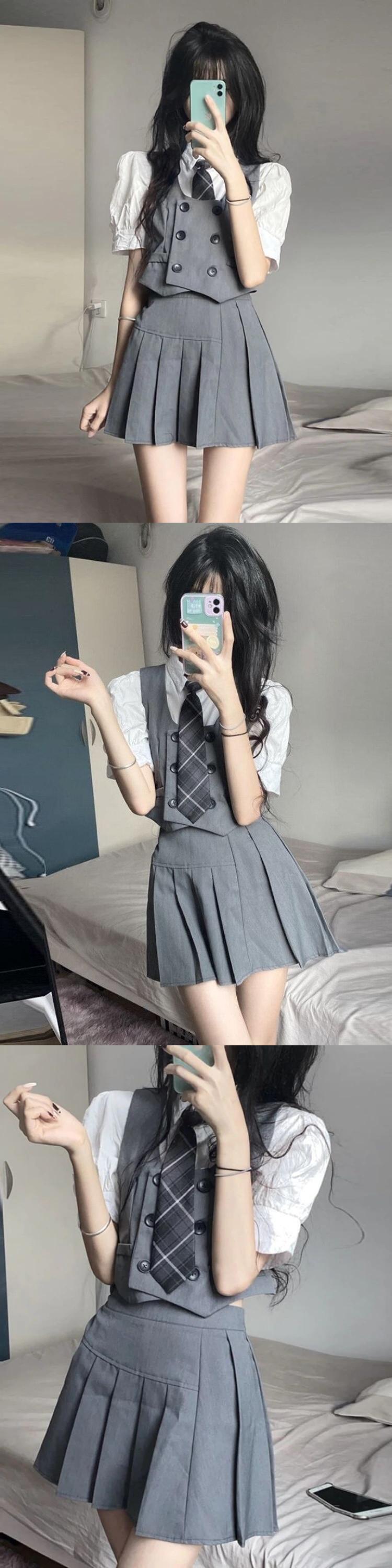 スーツベスト + ネクタイ付きシャツ + スカート 3 点セットグレースキニー布無地ボタンアップオフィスレディ学生スーツ ソリッドカラー 会社 学校 通勤や通学にも