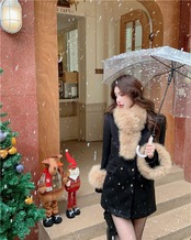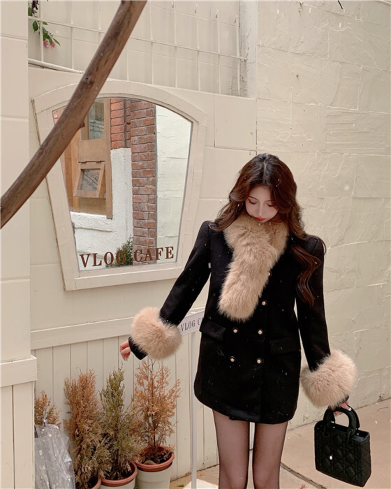 フレンチスタイルのレトロな取り外し可能な毛皮の襟ウールのコートのの秋冬厚さ長袖気質 Fhion コート ロング オータム 秋物 ウィンター 冬物
