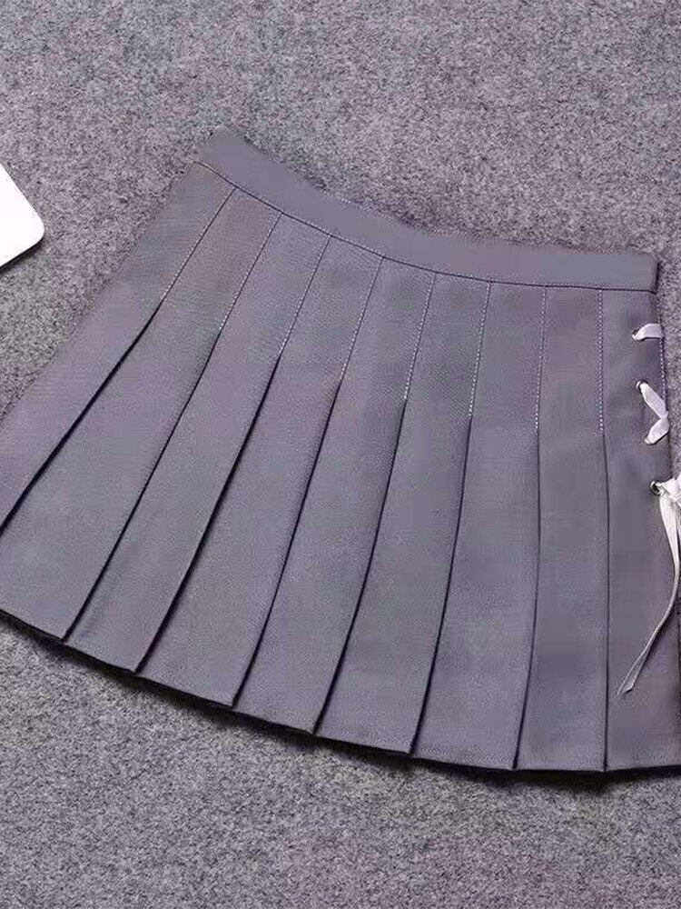 スカートピンク包帯プリーツスカートウエスト無地スキニー夏プレッピースタイルの服ボトム学生 サマー 夏物 ソリッドカラー