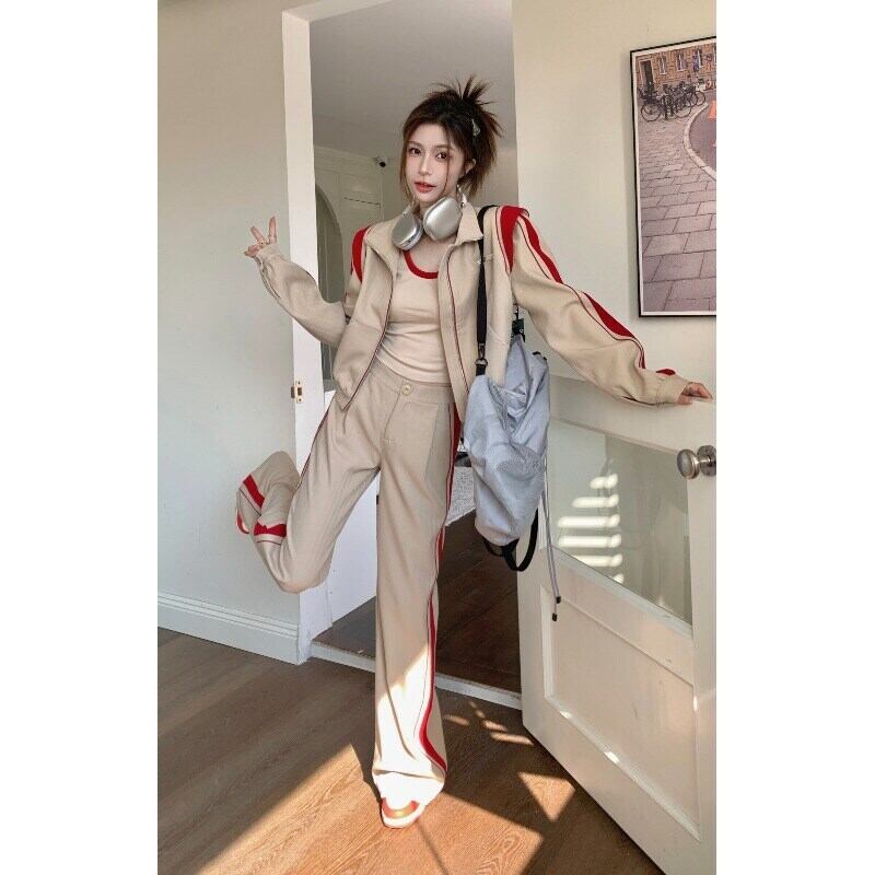 アメリカンストリートスーツレディース春スポーツコートサスペンダーベストワイドレッグパンツスリーピースセット服 スプリング 春物 ワイドパンツ
