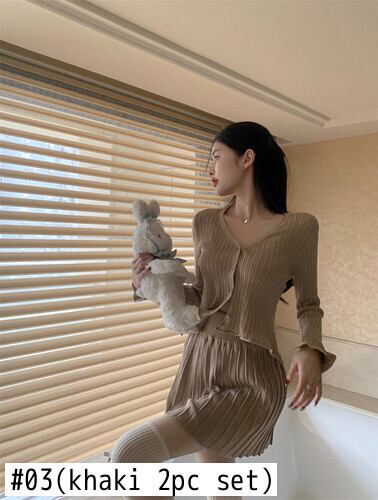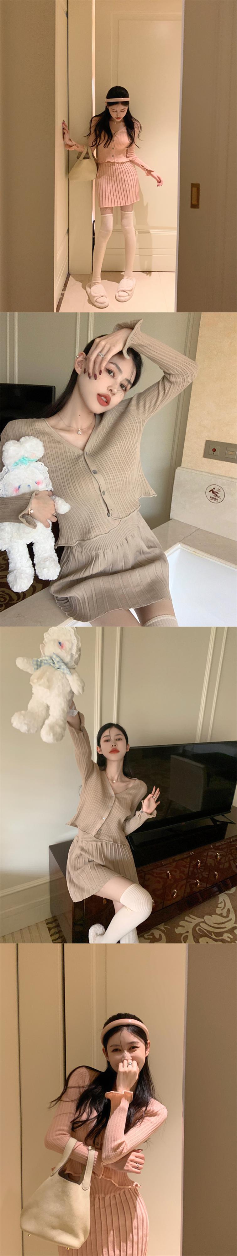 Sweet Girl スーツ ニット カーディガン Vネック ボトムス セーター ウエスト Aライン プリーツスカート 2点セット 洋服 大人ガーリー スウィート キュート カジュアル