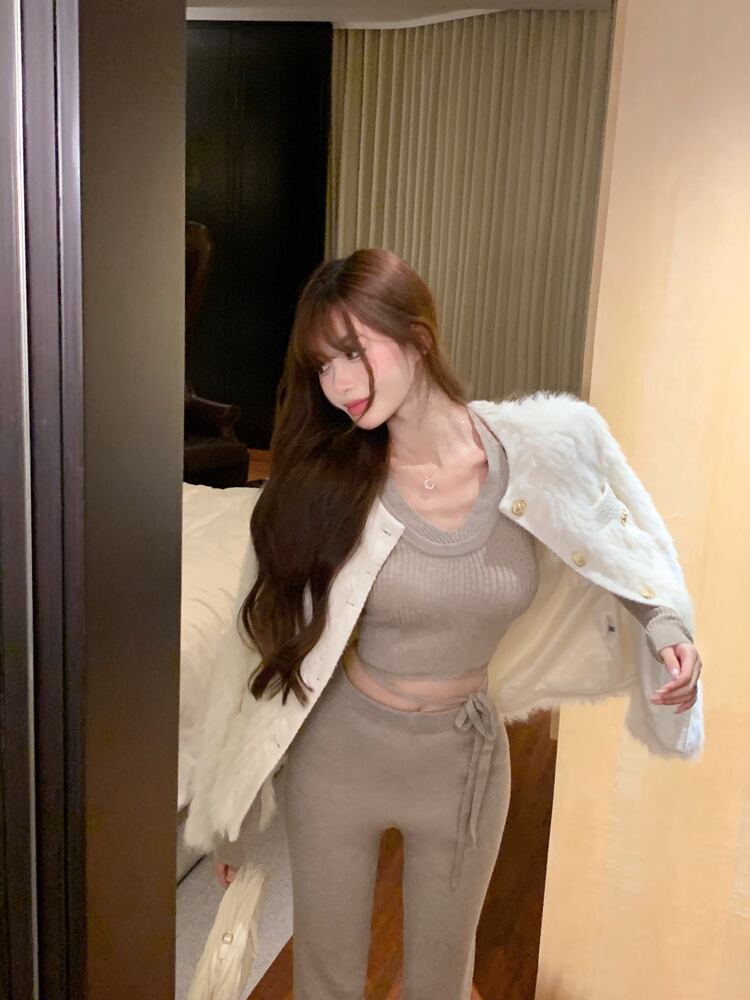 ホットガールスーツの秋と冬の長袖ニットセーターウエストパンツ 2 点セット服 ロング オータム 秋物 ウィンター 冬物