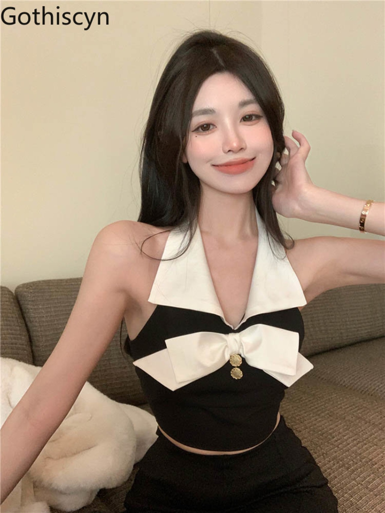 Gothiscyn タンクトップ ボウサスペンダー ベスト トップス ノースリーブ ボウネック キャミソール 夏服 リボン サマー 夏物