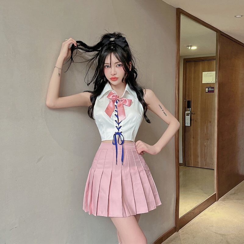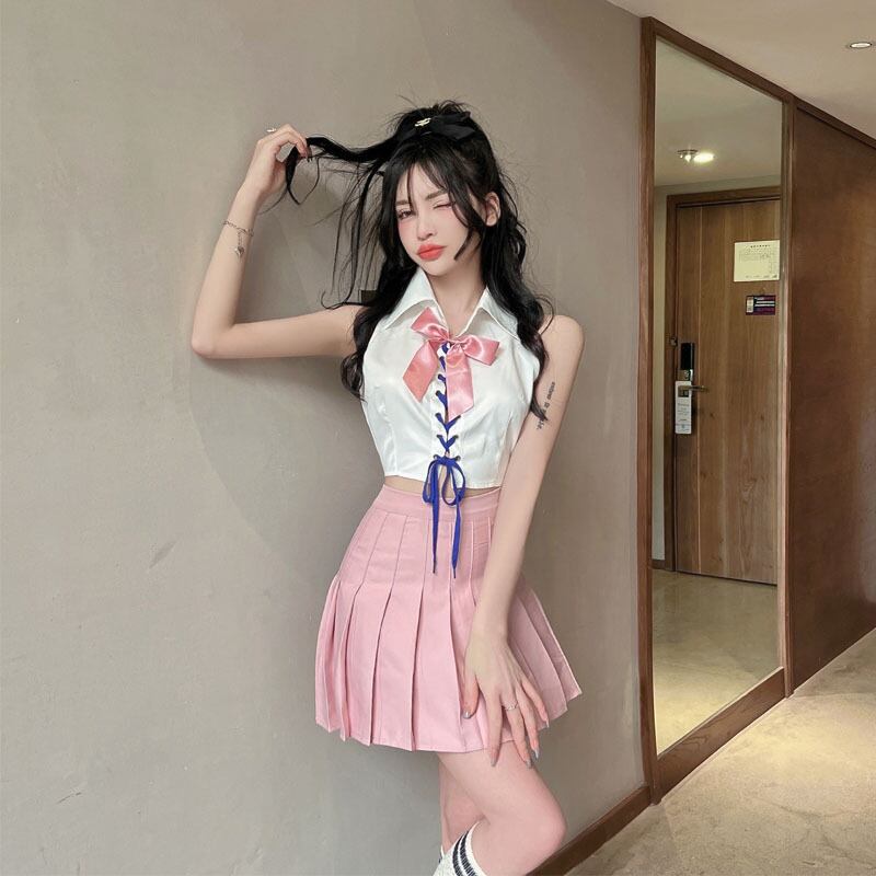 夏スタイルJKスーツセクシーショートシャツプリーツスカート甘いホットガールツーピースセット服 大人ガーリー スウィート キュート カジュアル サマー 夏物