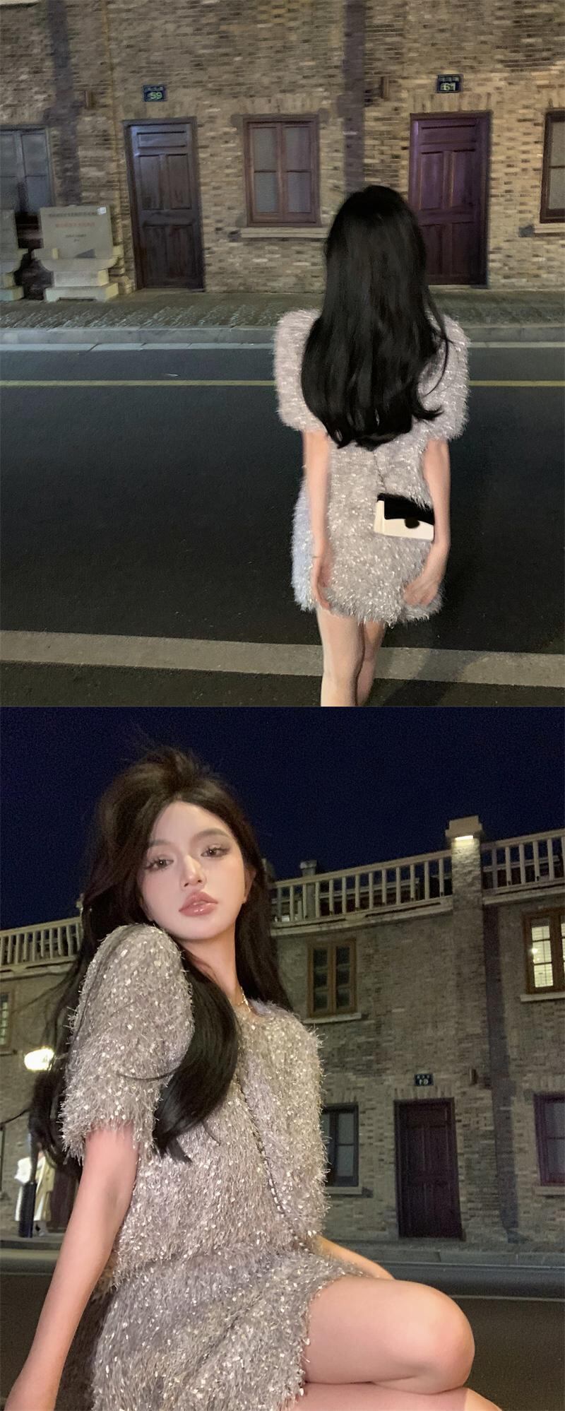ホット ガール スーツ ラウンド ネック半袖プルオーバー トップ ウエスト スリム ラップ ヒップ スカート 2 点セット服 ショート ハーフスリーブ Oネック