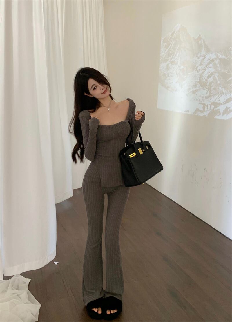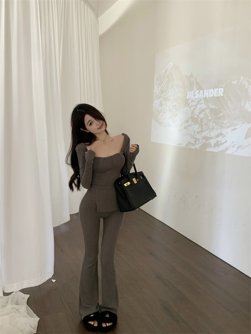 オフィスレディ痩身スーツ秋トップ不規則なの背の高い多彩なワイドレッグパンツ 2 点セット服 オータム 秋物 ワイドパンツ 会社 学校 通勤や通学にも