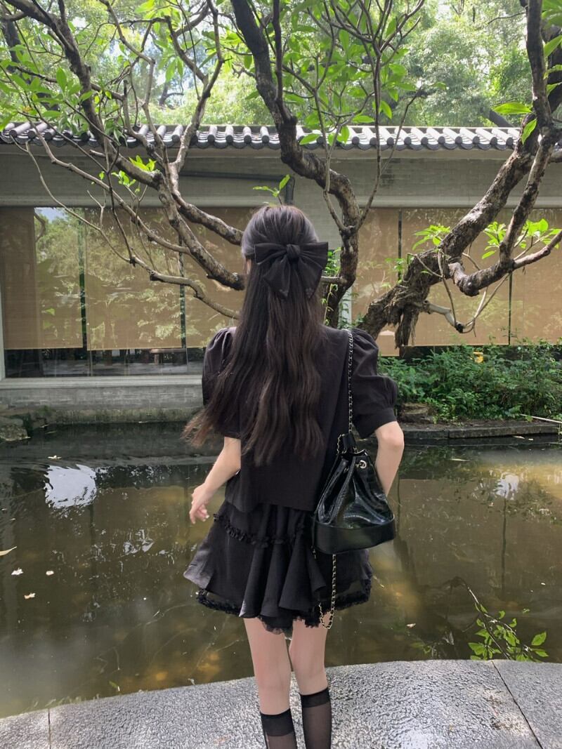 スウィートガール中国風のスーツのの半袖シャツトップ春メッシュふくらんショートスカート 2 点セット服 大人ガーリー キュート カジュアル スプリング 春物