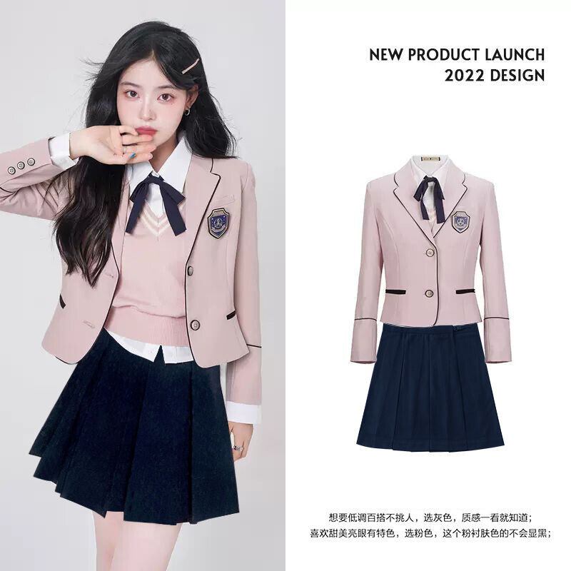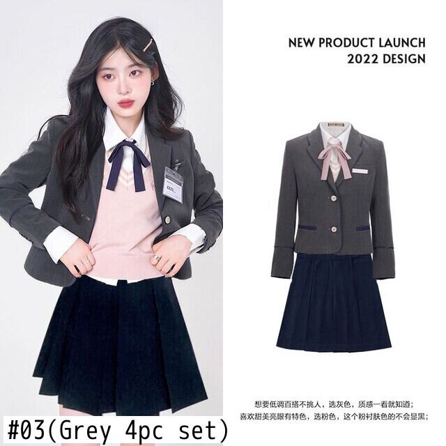 -style スーツ レディース スーツ コート Vネック ニットベスト 長袖 白シャツ Aライン プリーツスカート 4点セット ロング ホワイト