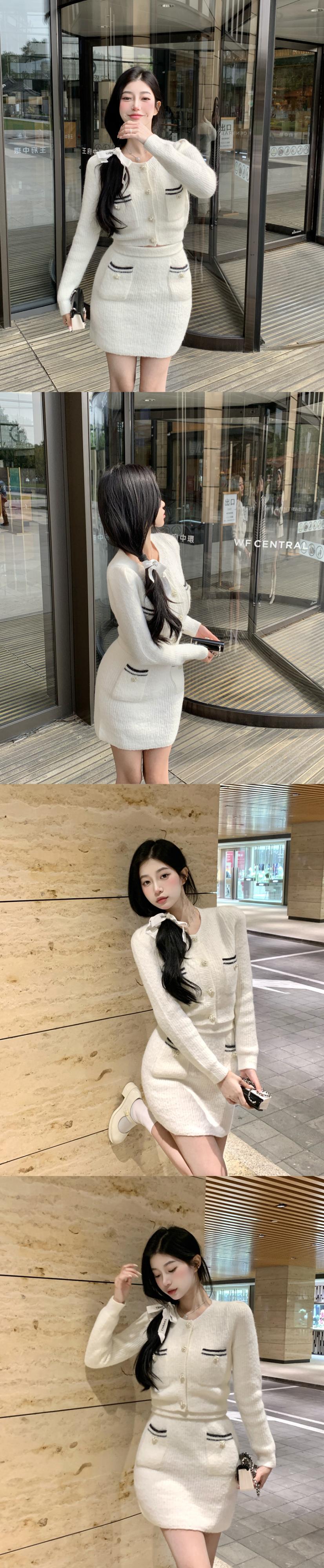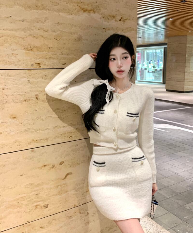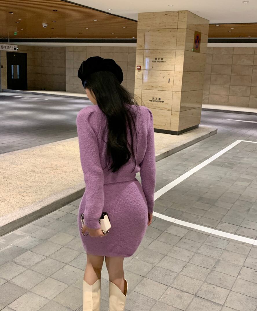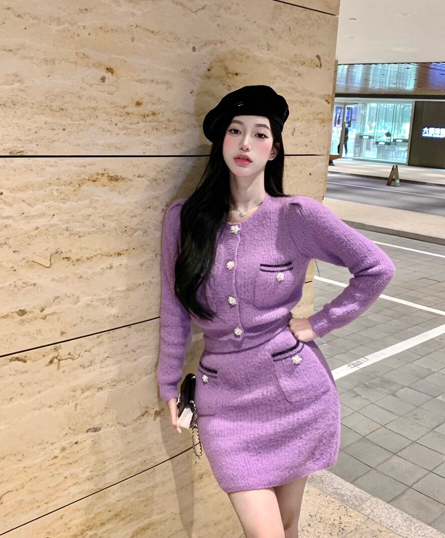 オフィスレディ ニットスーツ レディース 春秋 ラップヒップスカート 長袖 トップス 気質 ツーピースセット ロング スプリング 春物 オータム 秋物 会社 学校 通勤や通学にも