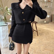 フレンチスタイル スーツ ツイードコート ウエストゆったり ハーフ丈 スカート 紫 オフィスレディ 小さめ 2点セット 洋服 パープル 会社 学校 通勤や通学にも