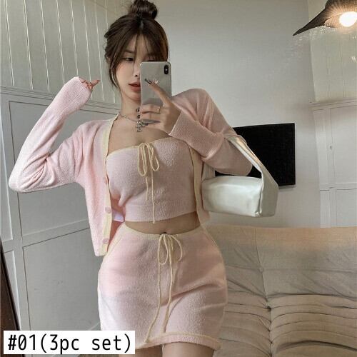 甘い女の子スーツの春純粋な欲望ができる巾着バインディングバストラップスカートジャケットニット 3 点セット 大人ガーリー スウィート キュート カジュアル スプリング 春物 ピュア