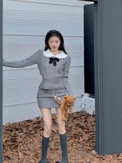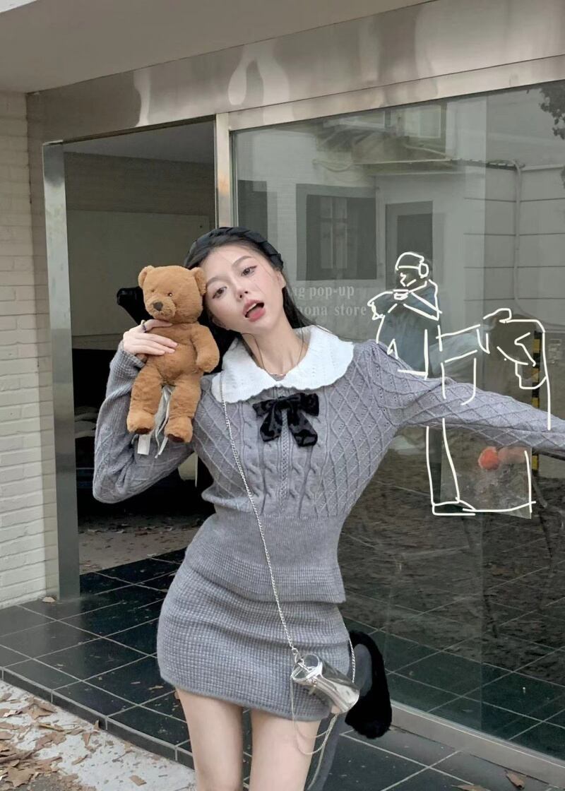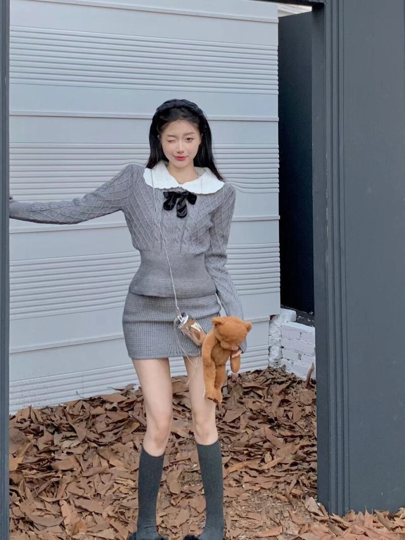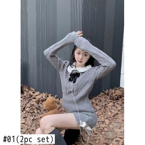ニットセーター 長袖 トップス 秋冬 レディース スリムスカート 2点セット 洋服 ロング オータム 秋物 ウィンター 冬物