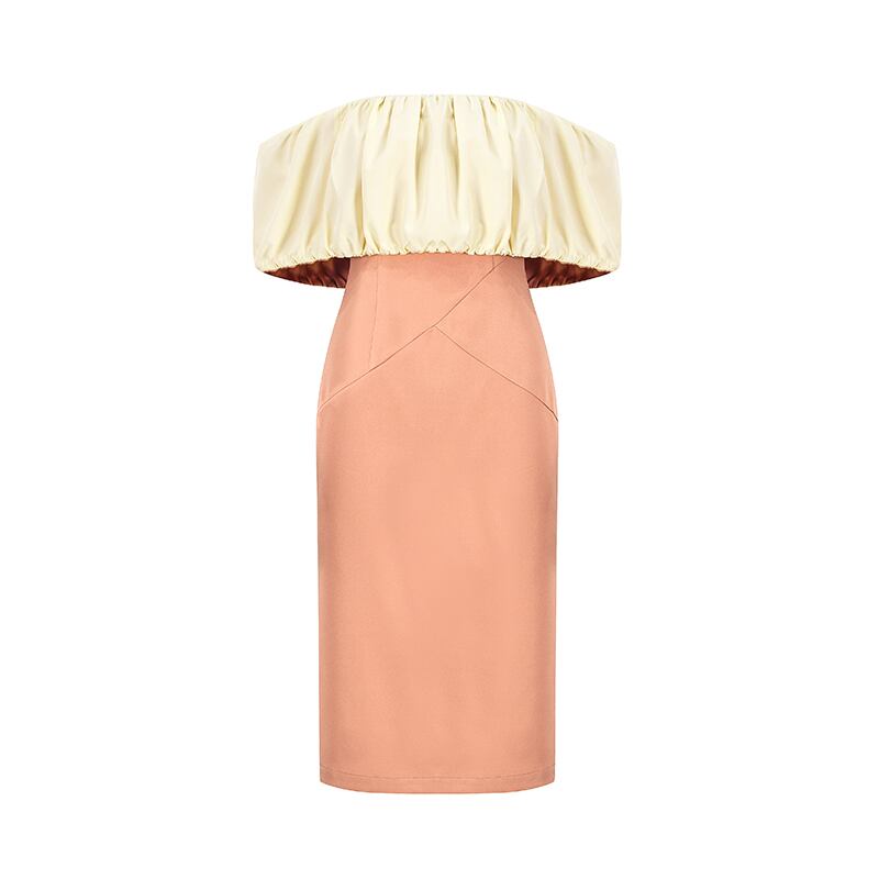 オフショルダーピンクドレススラッシュネックステッチドレス-品質気質ローブ Vestidos スター同じスタイル