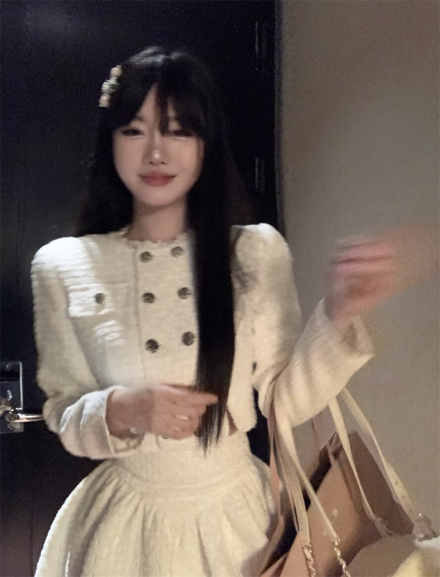 甘くてクールな女の子のスーツのの冬ツイード ショート スカート エンド ダブル ブレスト ショート コート 2 点セット服 大人ガーリー スウィート キュート カジュアル ウィンター 冬物