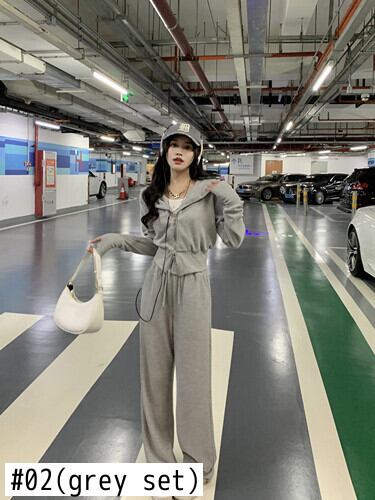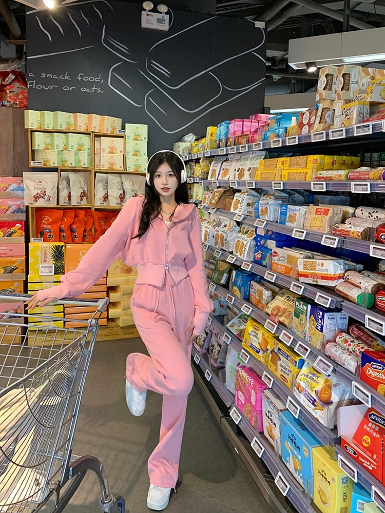 ピンクスポーツスーツレディース春長袖ルーズフード付きコートワイドレッグパンツツーピースセット服 ロング スプリング 春物 ワイドパンツ