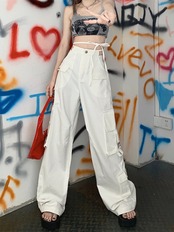 Gothiscyn カーゴパンツズボンストラップホワイト夏ルースワイドレッグパンツウエストレディースゴシックパンク サマー 夏物 ワイドパンツ