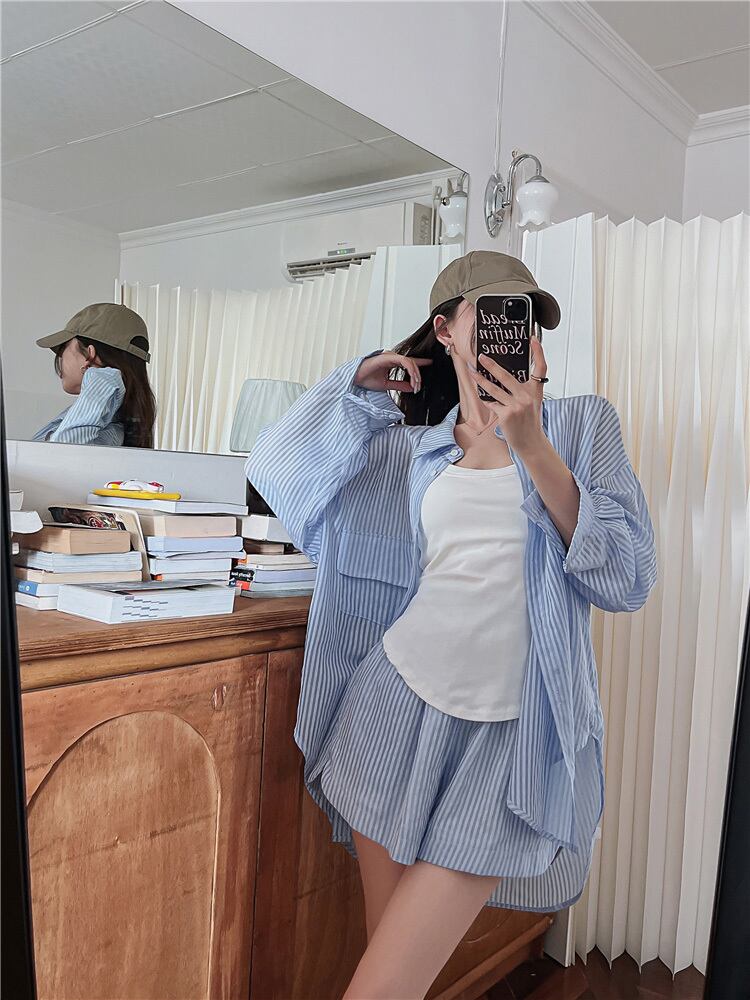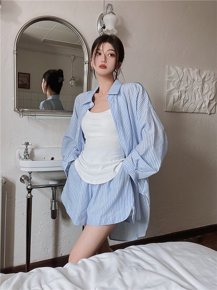 ツーピースセットレディース衣装ベストストライプシャツワイドレッグショーツパンツ梨花服秋/冬 2pc セット オータム 秋物 ウィンター 冬物 ブルマー ワイドパンツ