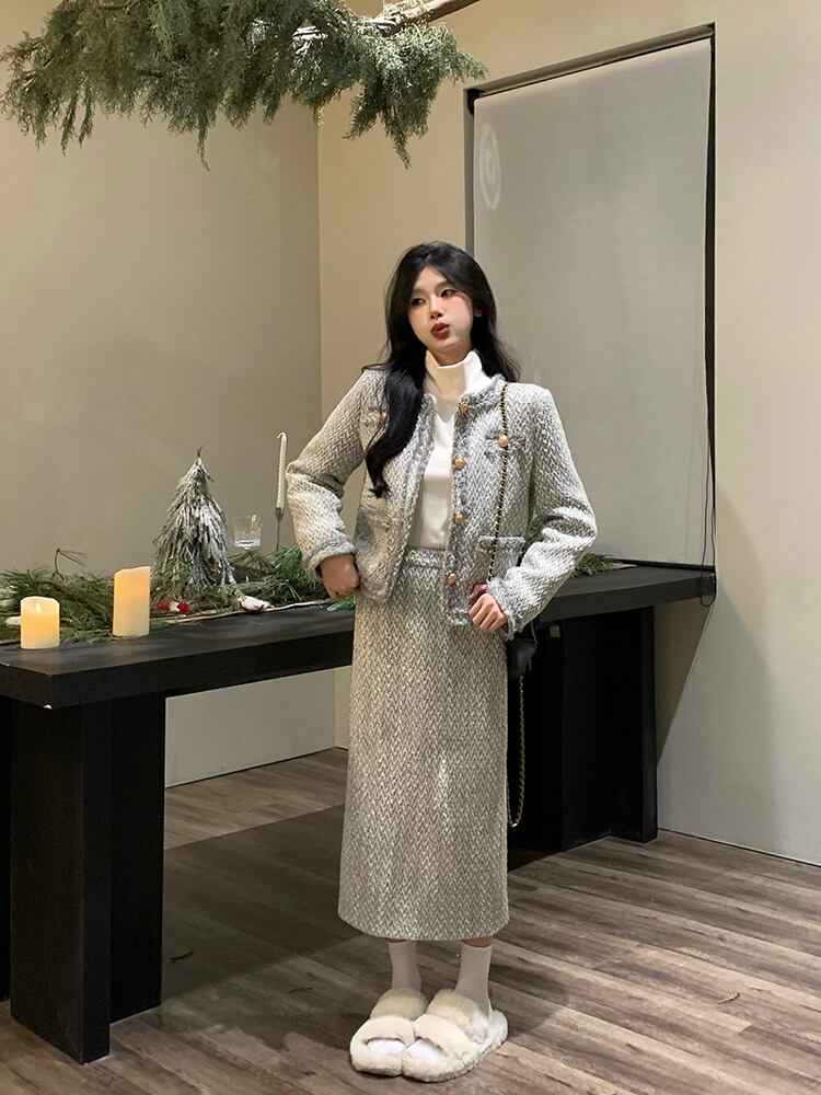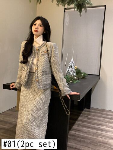 オフィスレディ綿クリップウォームスーツの冬長袖コートウエストスプリットスカートツーピースセット服 ロング コットン ウィンター 冬物 会社 学校 通勤や通学にも