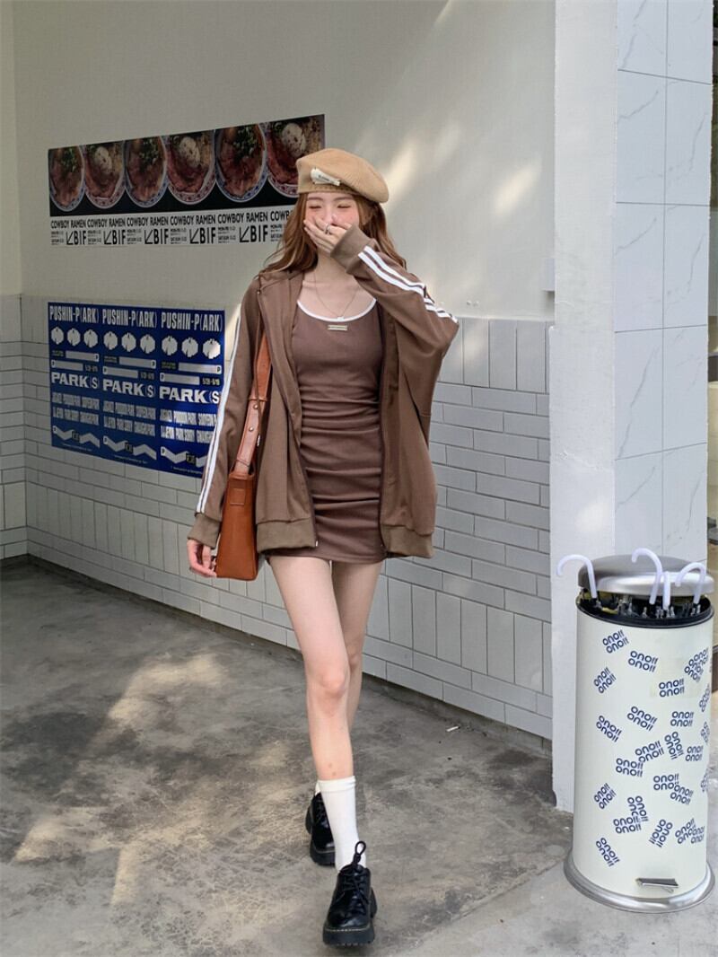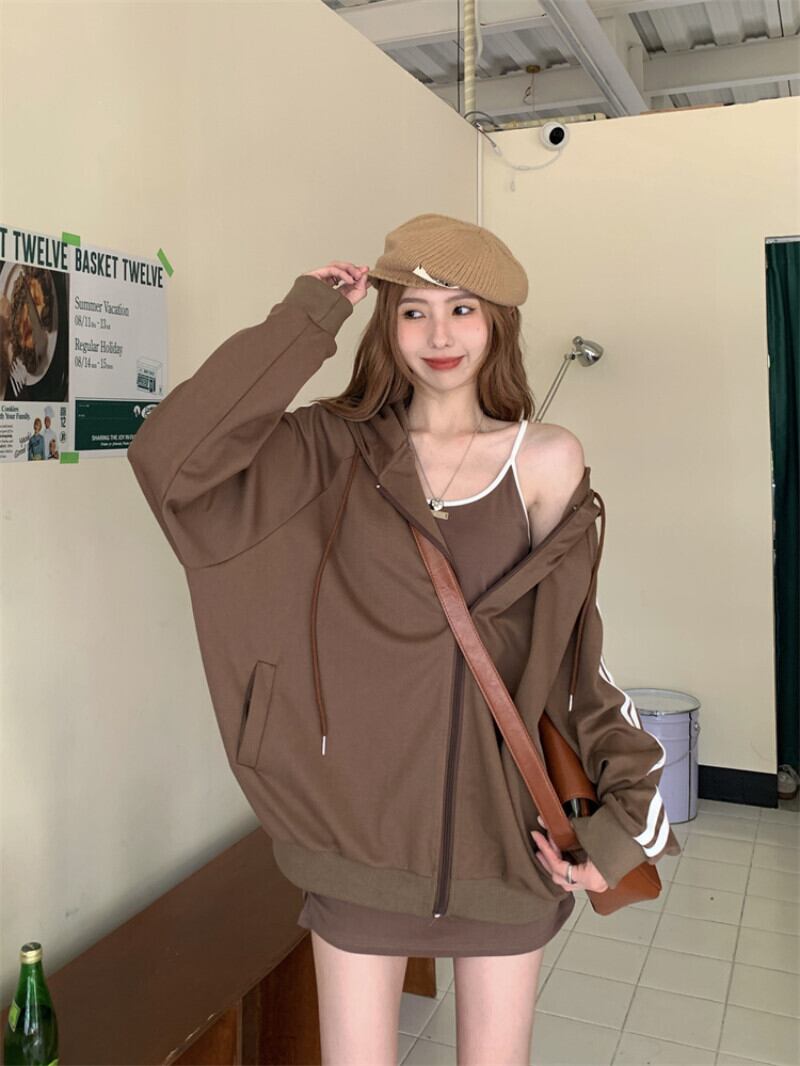 スーツ レディース 秋冬風 サスペンダードレス 長袖 フード付き スウェットコート 2点セット ロング オータム 秋物 ウィンター 冬物