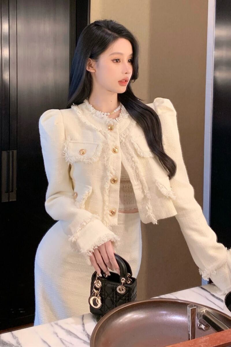 スーツの秋の長袖ショートコートスプリットスカートセレブ気質 2 点セット服 ロング オータム 秋物