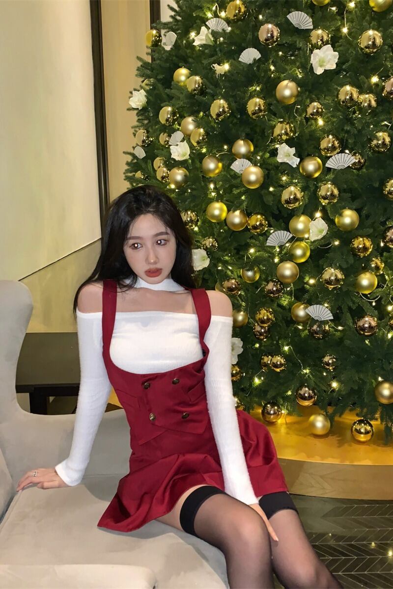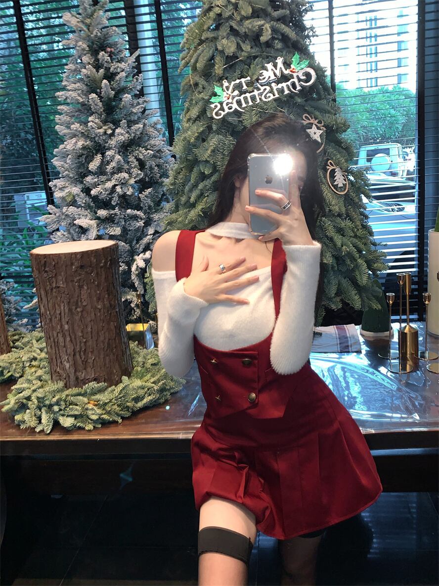クリスマス JK スタイル ホット ガール スーツ サスペンダー ベスト ウエスト スリム プリーツ スカート 2 点セット服