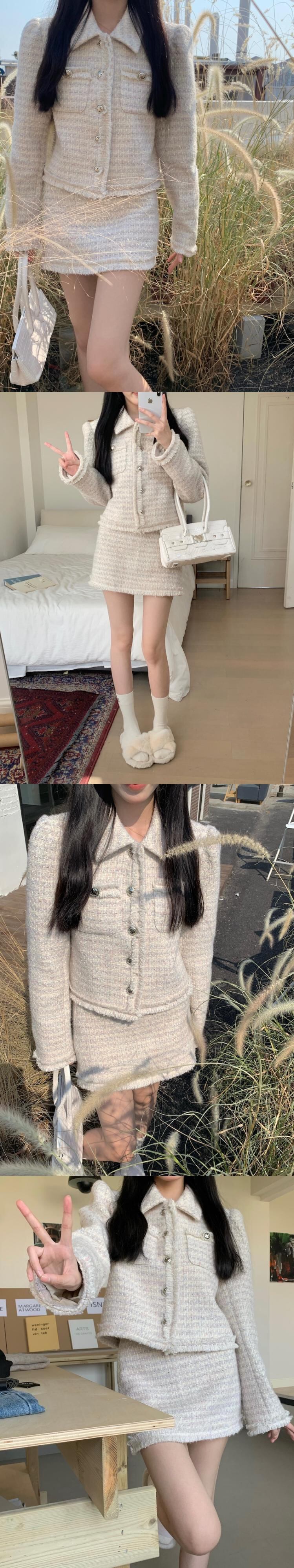 スーツ気質ツイードターンダウンカラーコート秋冬Aラインスカートツーピースセット服 オータム 秋物 ウィンター 冬物