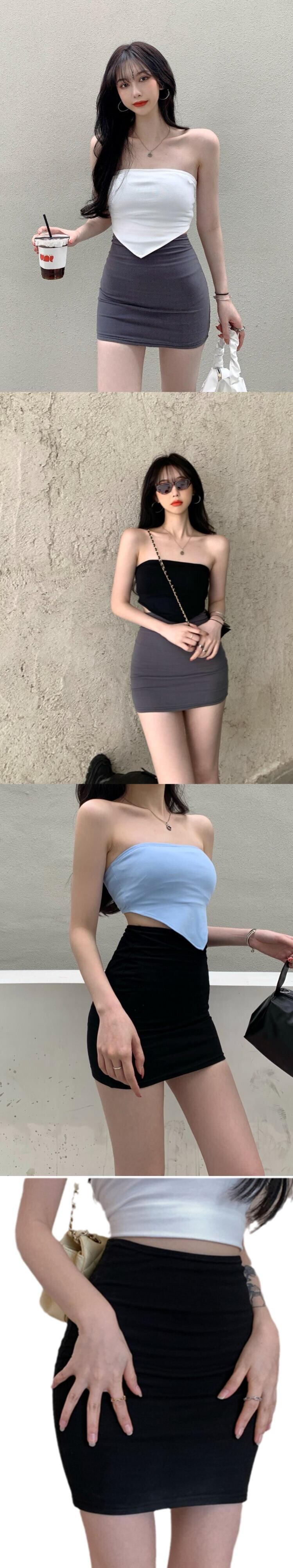 Gothiscyn セクシー ホット ガール チューブ トップ + ミニ スカート 2 点セット サマー ウエスト タイト セクシー レトロ スリム ソリッド ベスト Y2k スーツ 夏物 ソリッドカラー