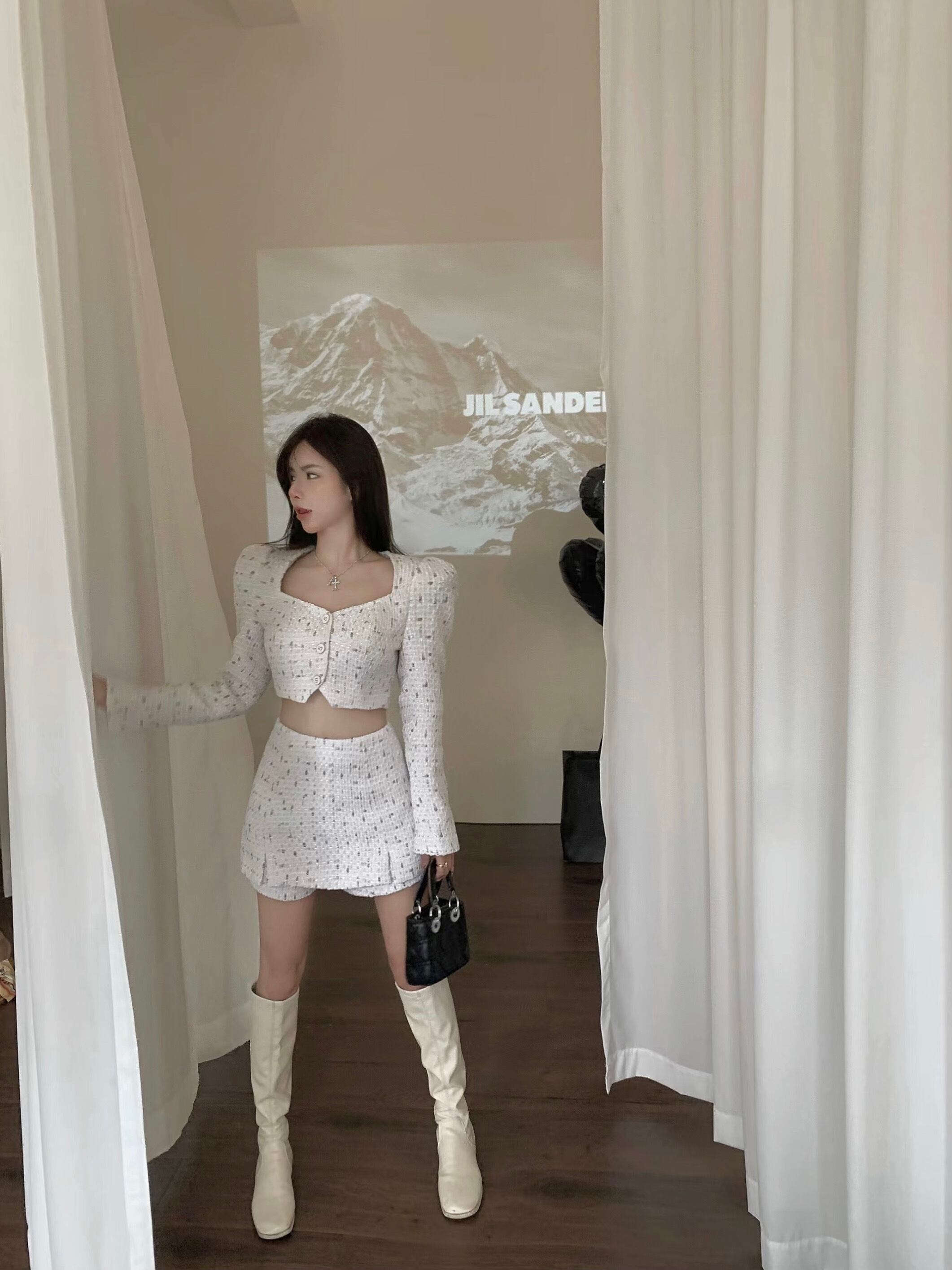 Sweet Girl スーツ冬スタイルロングスリーブショートトップコートウエストスカート 2 点セット服 長袖 大人ガーリー スウィート キュート カジュアル ウィンター 冬物